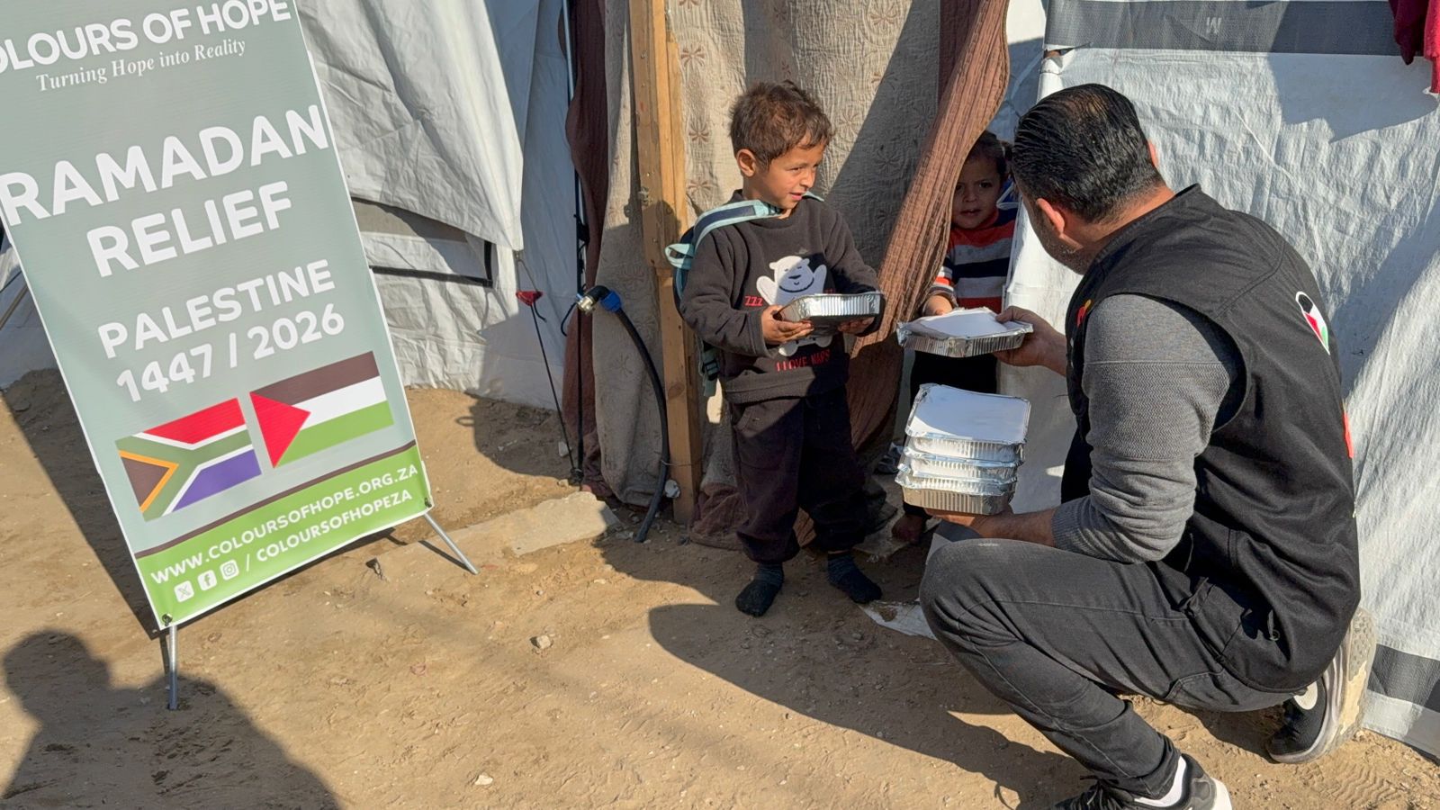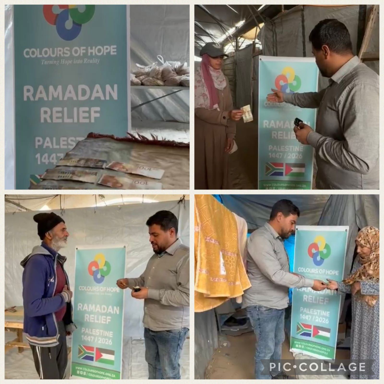 Every rand you contribute through Islamic SMS Services is put to work on the ground in Palestine. In partnership with Colors of Hope, we ensure that donations are transformed into food packs, clean water, medical assistance, blankets, and educational supplies for those who need them most. This page offers a glimpse into your generosity in action.